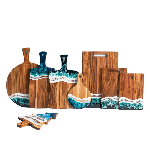 Tagliere in legno di Acacia con resina di onde di mare artigianale-piatto di bistecca multiuso, frutta e pane per la cucina